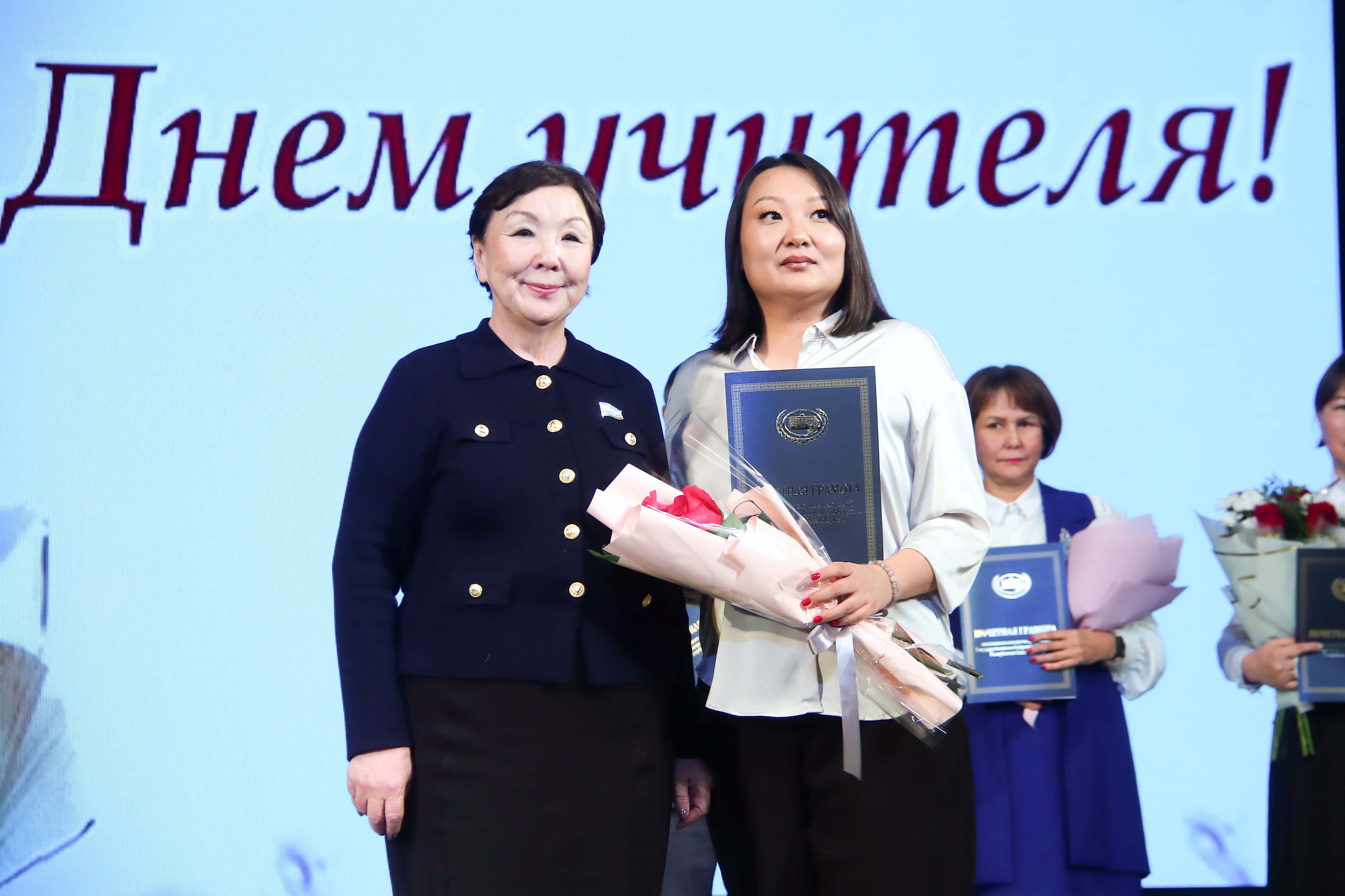 За многолетний плодотворный труд и вклад в развитие образования Республики Саха (Якутия) Почетной грамотой Постоянного комитета по науке и образованию Государственного Собрания (Ил Тумэн) Республики Саха (Якутия) награждены: учитель труда (технологии) средней общеобразовательной школы № 3 г. Якутска Варвара Соловьева, учитель информатики Средней общеобразовательной школы № 12 г. Якутска Дмитрий Кононов, учитель английского языка Средней общеобразовательной школы № 23 им. В.И. Малышкина г. Якутска Мария Кузьмина, учитель русского языка и литературы Средней общеобразовательной школы № 25 г. Якутск Марина Бянкин, учитель труда (технологии) Средней общеобразовательной школы № 39 им. Н.И. Шарина г. Якутска Лариса Капитонова.