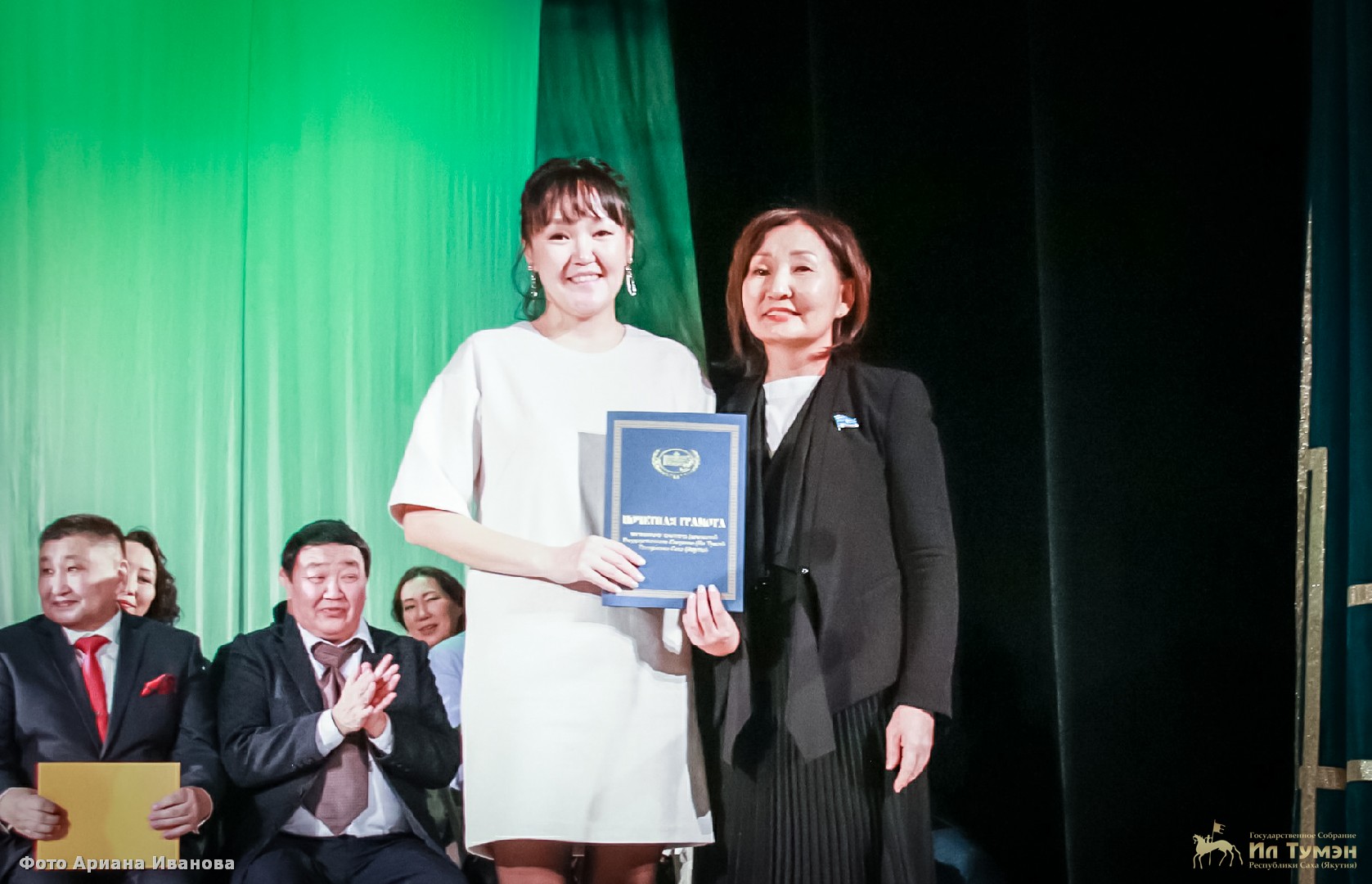 Почетные грамоты комитета Государственного Собрания (Ил Тумэн) Республики Саха (Якутия) по делам семьи и детства Алена Николаевна вручила Александре Вячеславовне Иванове и Жанне Илларионовне Семеновой.