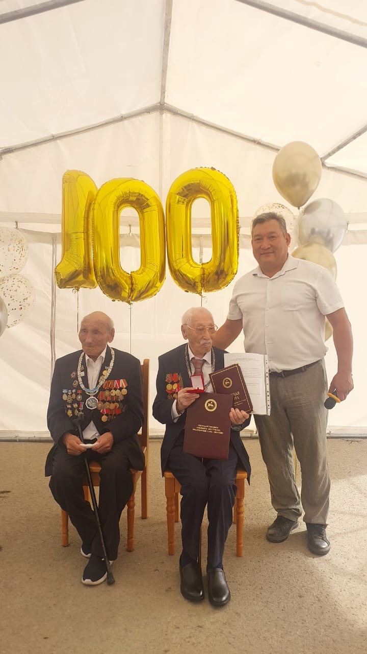 В юбилейном торжестве ветерана поздравили заместитель Председателя Правительства Республики Саха (Якутия) Георгий Степанов. От имени Главы Республики Саха (Якутия) Айсена Николаева ветерану вручили почётный знак «Үйэ саас» и сообщили, что единовременная выплата в размере 1 миллиона рублей направлена юбиляру.
