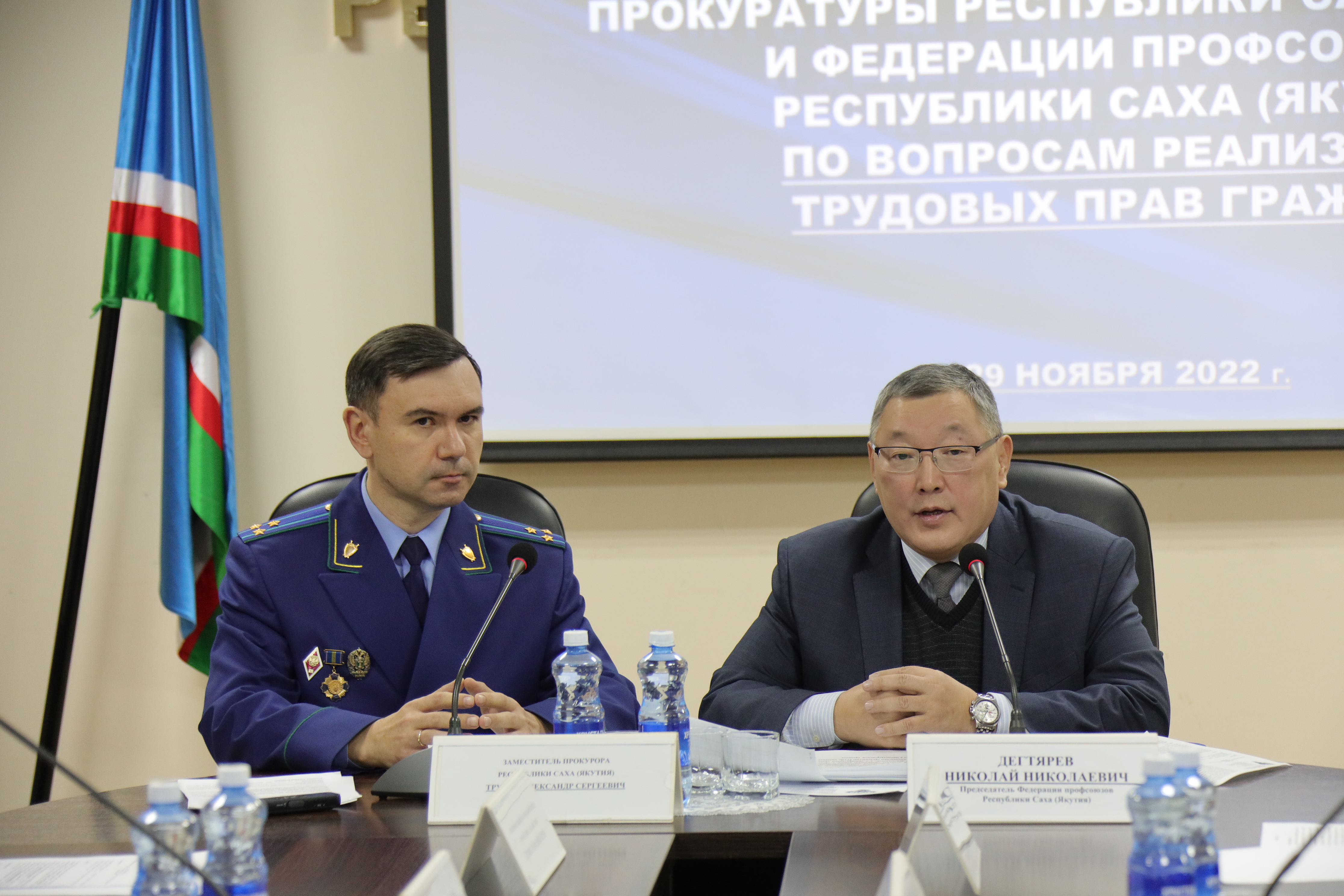 Круглый стол прошел под руководством председателя Федерации профсоюзов РС (Я) Николая Дегтярева и заместителя прокурора РС (Я) Александра Трухина.