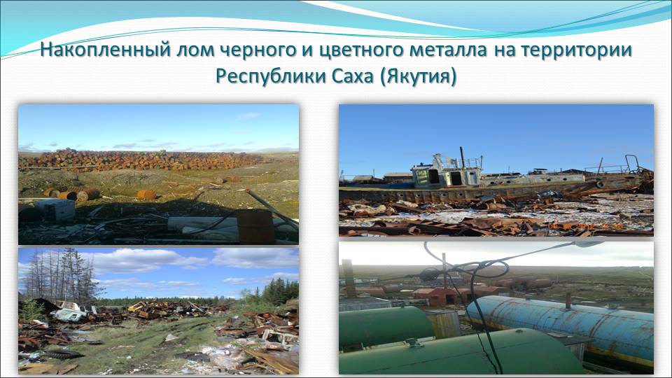 Первый заместитель министра экологии, природопользования и лесного хозяйства Республики Саха (Якутия) Семен Яковлев выступил с кратким докладом с презентацией слайдов об объектах накопленного вреда окружающей среде на территории Республики Саха (Якутия). Он сообщил, что на данный момент в государственный реестр объектов накопленного вреда окружающей среде включено 4 объекта: объект накопления лома металлов в п. Тикси Булунского улуса, хвостохранилище Куларской ЗИФ, Лебединской ЗИФ и Депутатского ГОКа. На территории республики предварительно установлено 437 точек накопления цветного и черного металла, 84% от общего объема которых находится на территории Арктической зоны республики. Также, в 5 арктических районах республики имеется 18 заброшенных населенных пунктов. В соответствии с действующим законодательством в сфере обращения с отходами на территории Республики Саха (Якутия) требуется рекультивировать 464 несанкционированных свалок, которые не отвечают требованиям природоохранного и санитарного законодательства, но продолжают эксплуатироваться в качестве объектов размещения отходов. По самым грубым подсчетам на эти цели необходимо около 90 млрд рублей из расчета 200 млн рублей на рекультивацию 1 свалки.